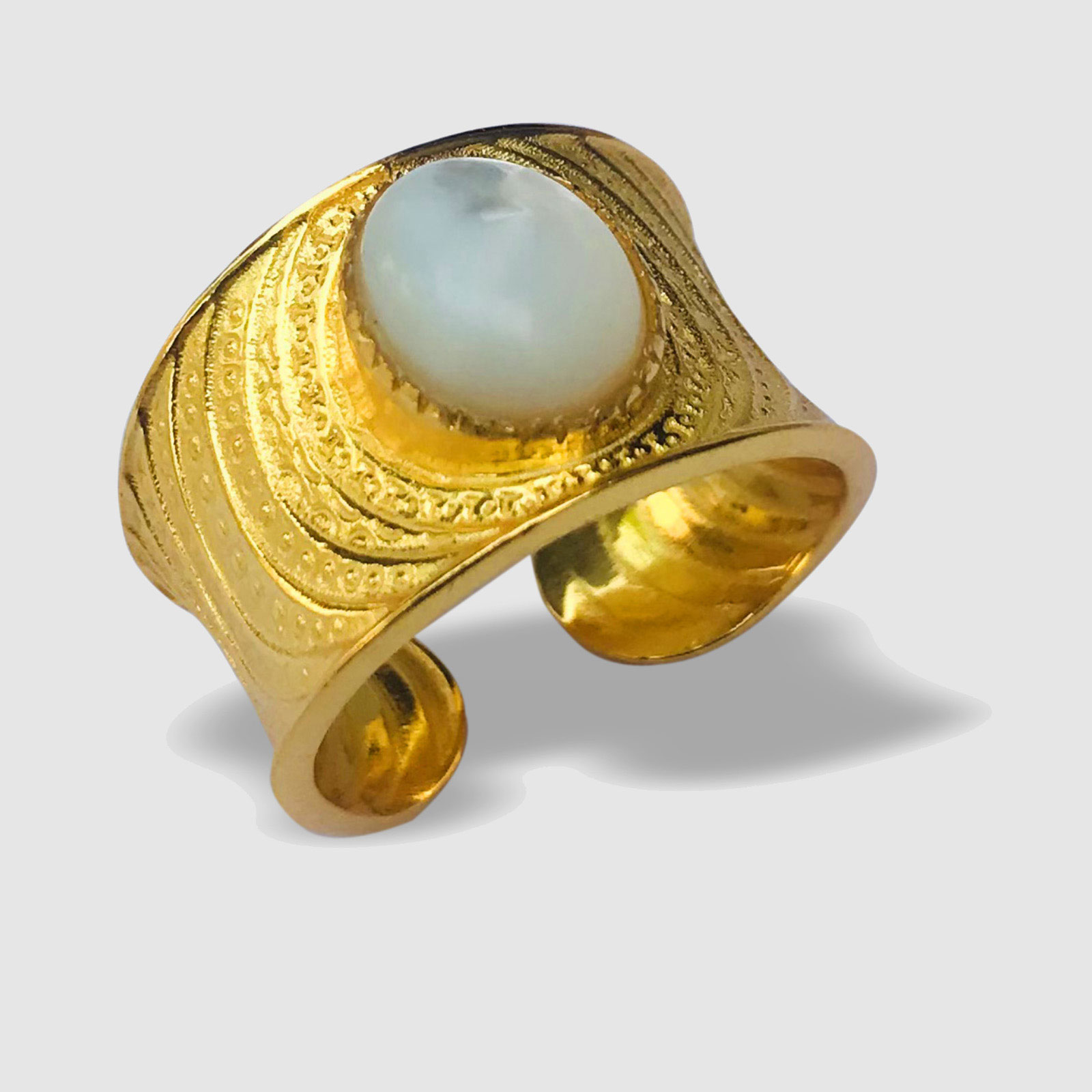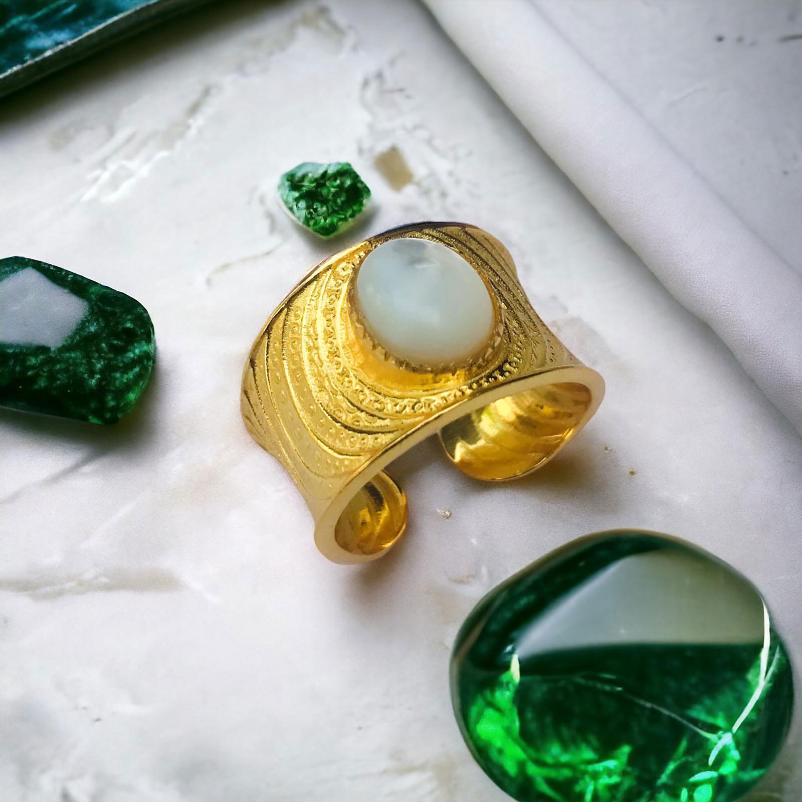 Bague ajustable en laiton avec pierre semi-précieuse
