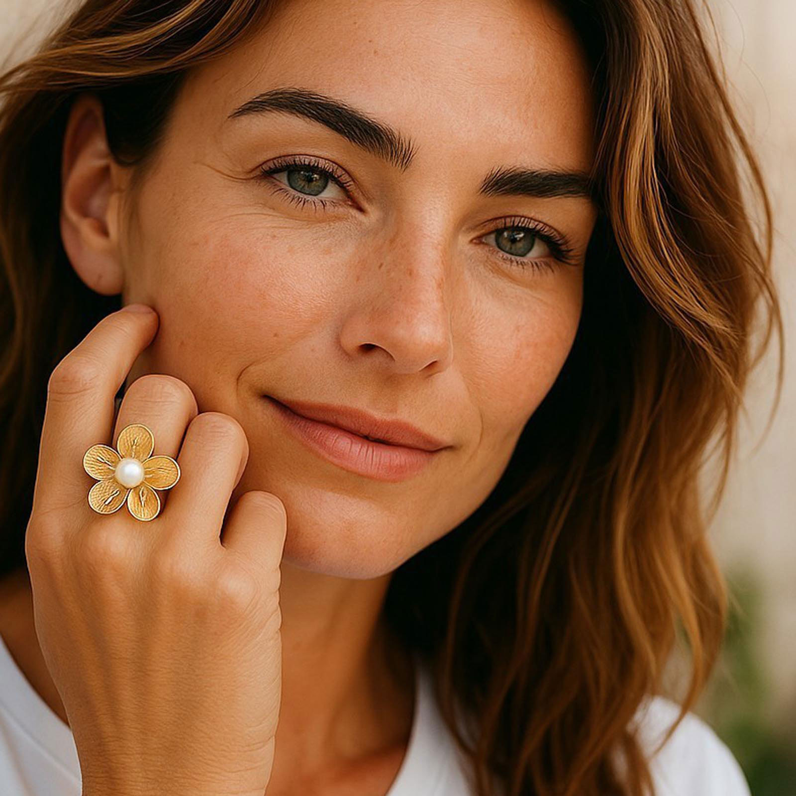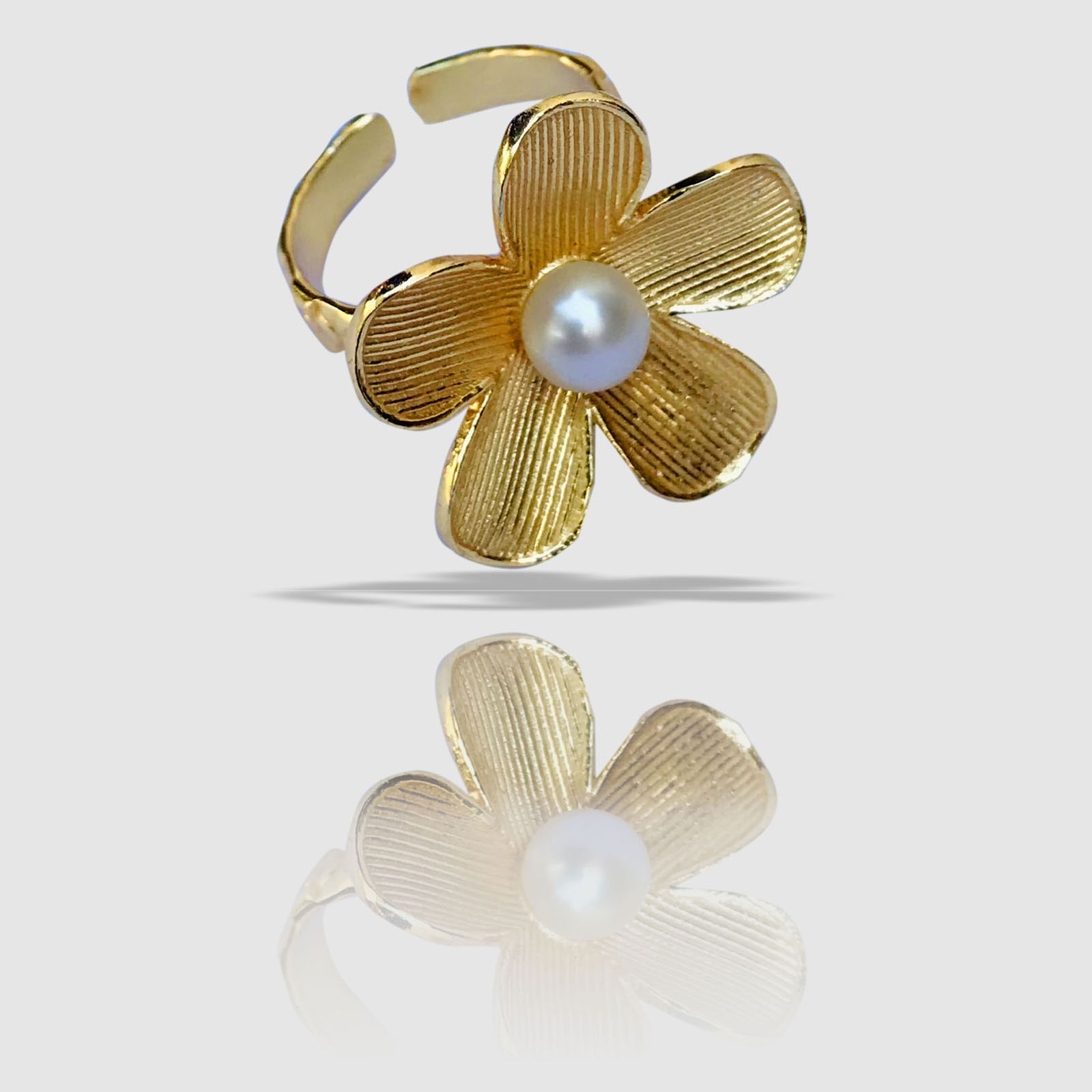 Bague ajustable en laiton avec perle.