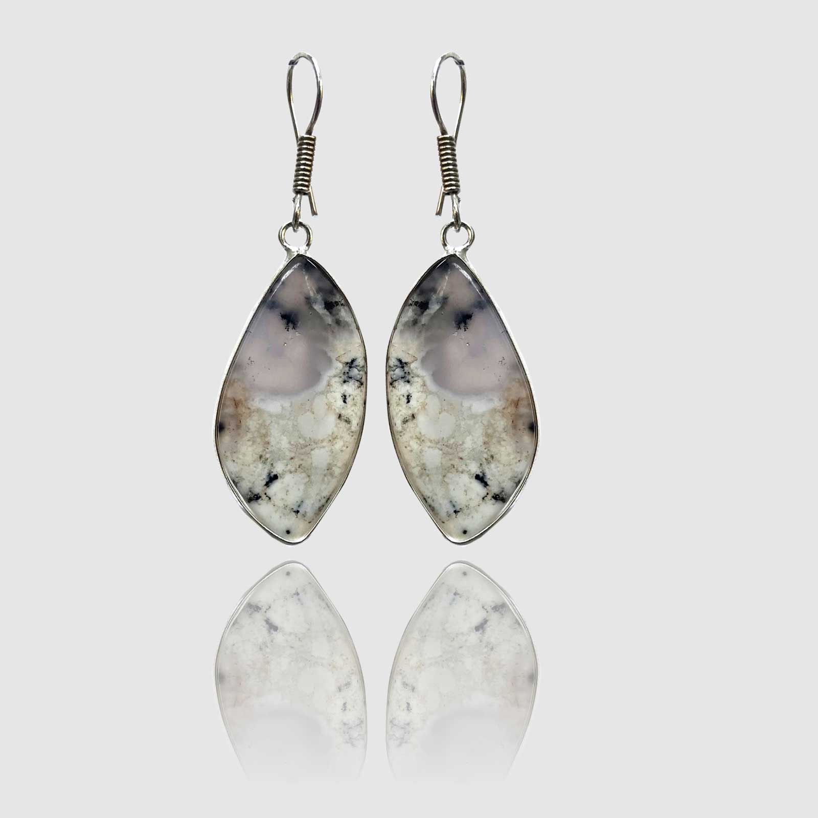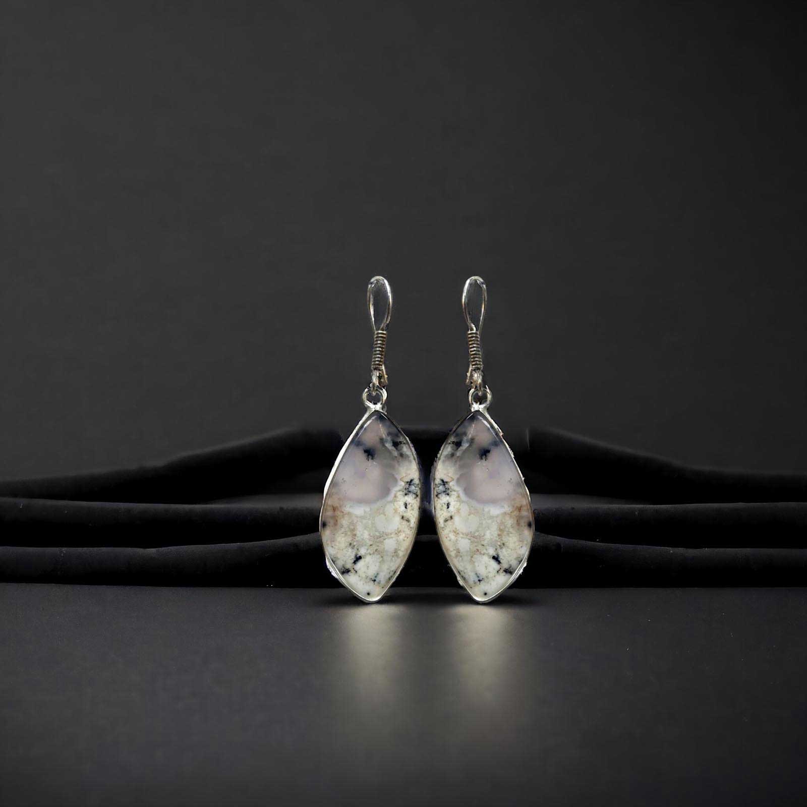 Boucles d’oreilles en acier inoxydable avec pierres semi-précieuses.