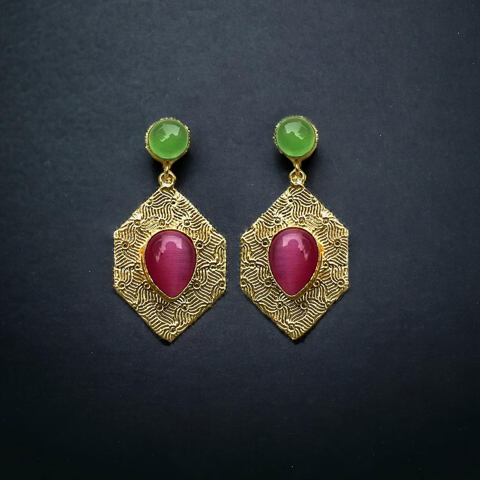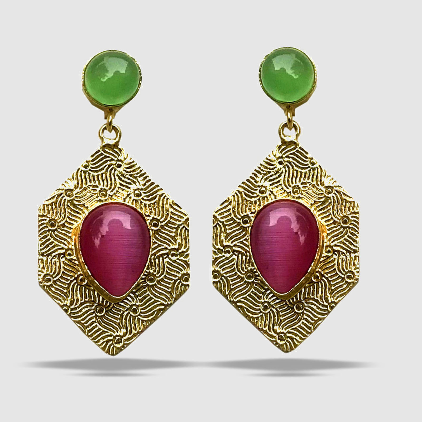 Boucles d’oreilles en laiton plaqué or avec pierre semi précieuse onyx.