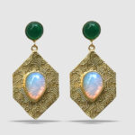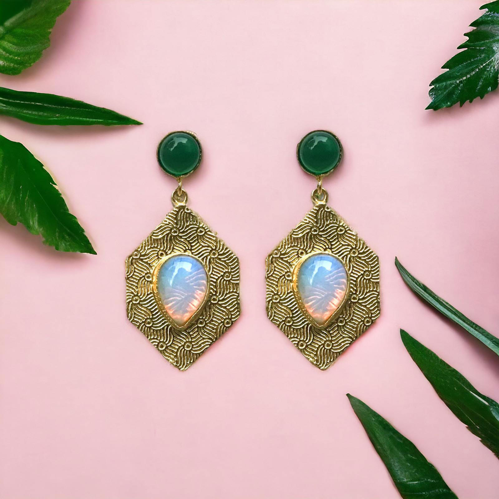 Boucles d’oreilles en laiton plaqué or avec pierre semi précieuse onyx.