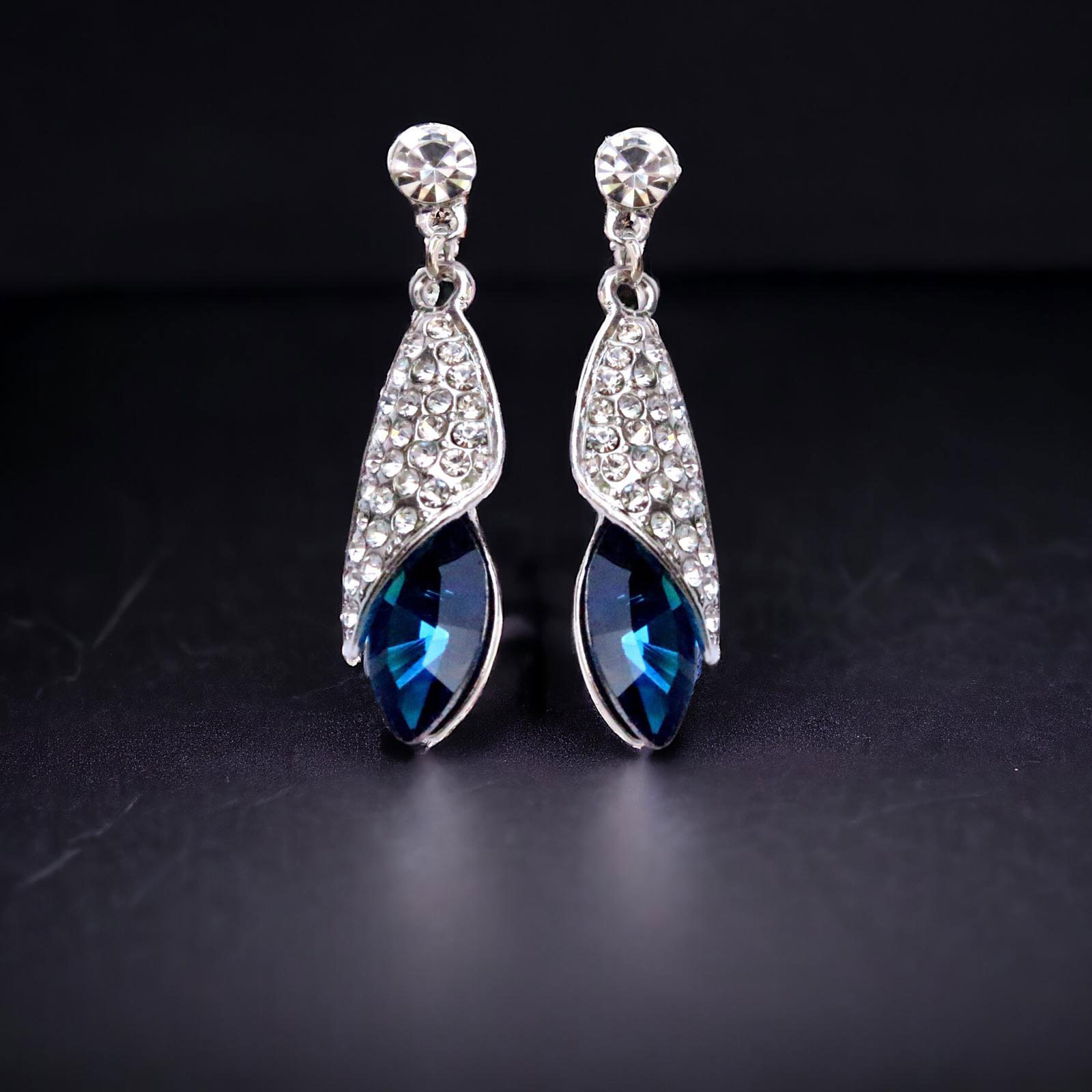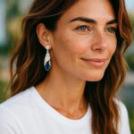 Boucles d’oreilles en laiton plaqué platine avec pierre semi-précieuse et diamants américains.