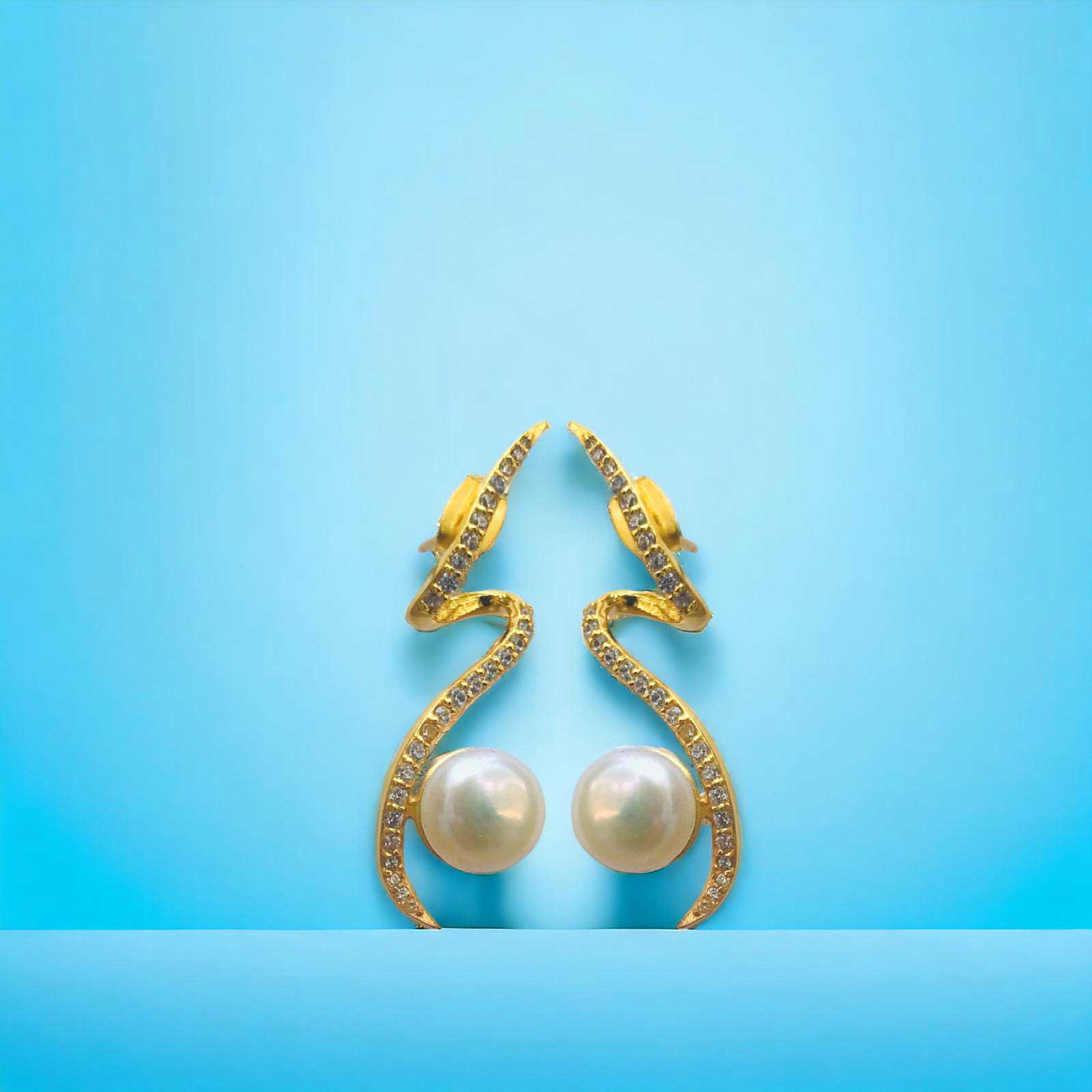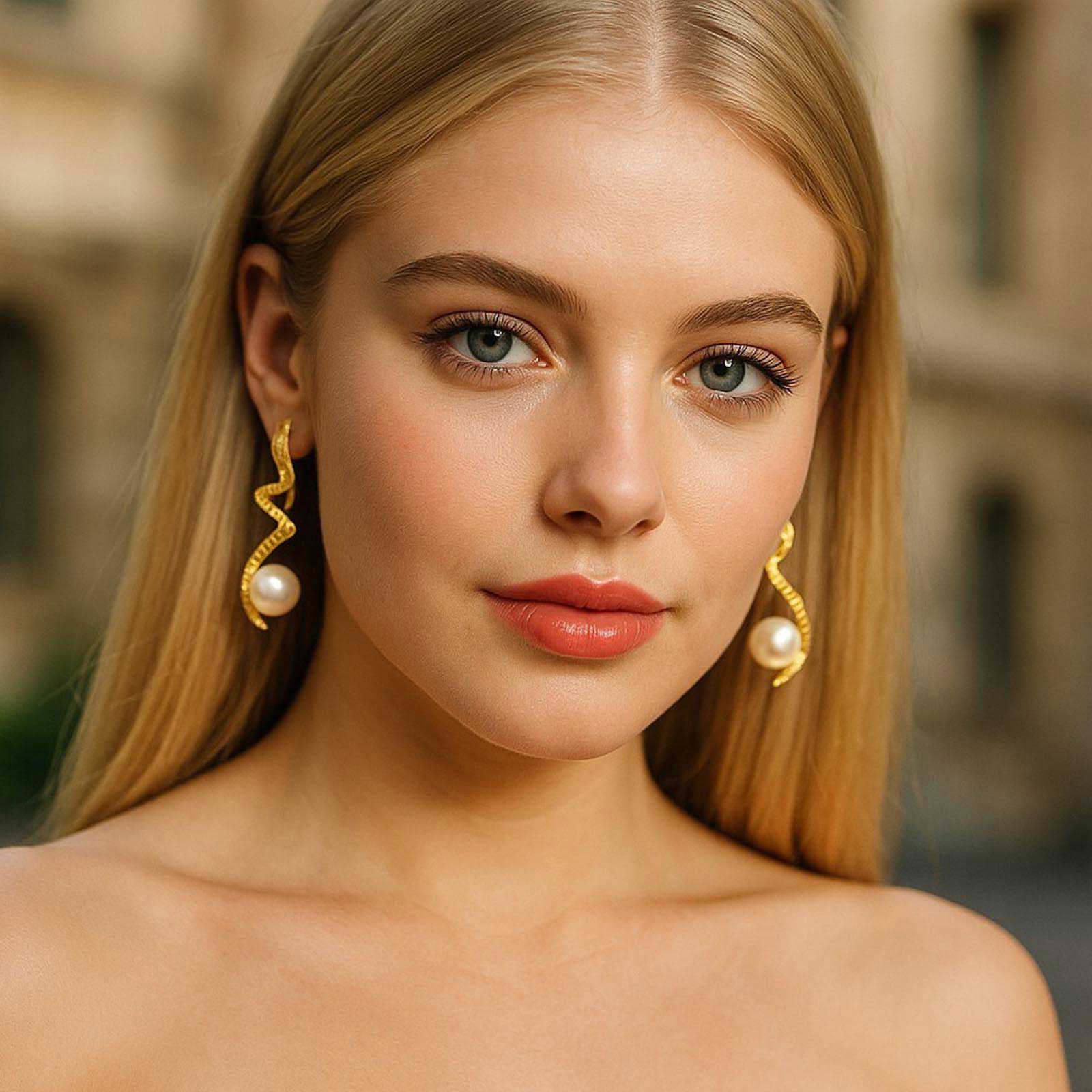 Boucles d’oreilles en laiton plaqué or avec pierres semi-précieuses et perle