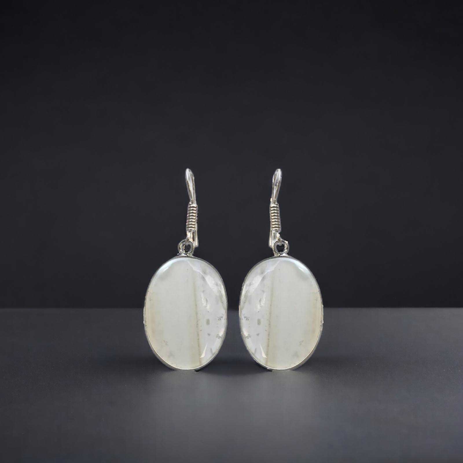 Boucles d’oreilles en acier inoxydable avec pierres semi-précieuses.