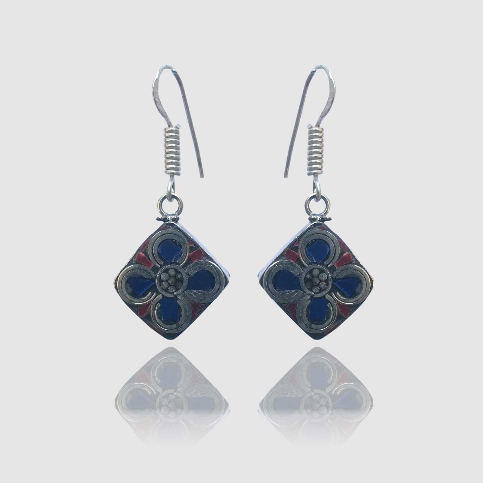 Boucles d’oreilles en acier inoxydable avec pierres semi-précieuses.