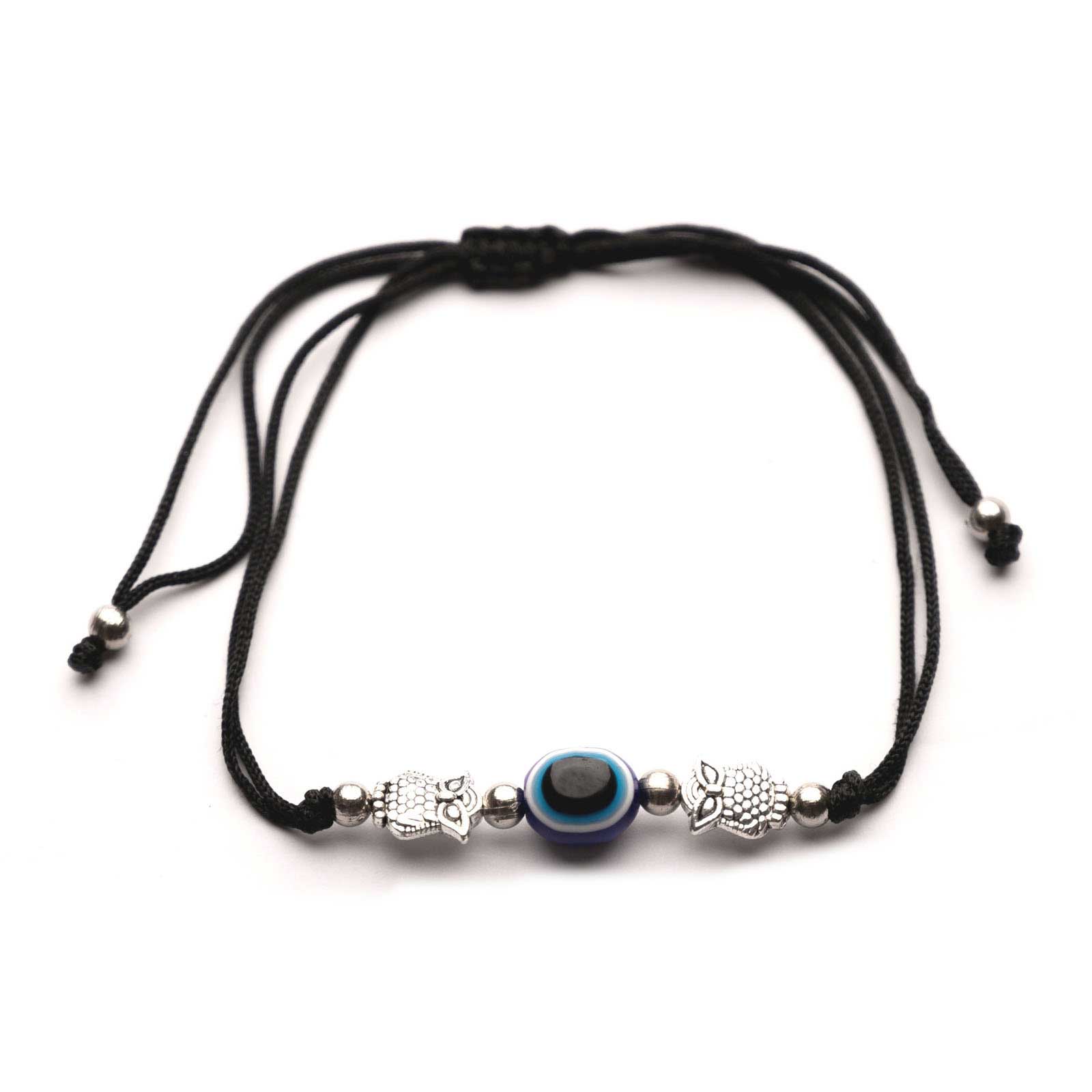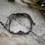 Bracelet ajustable en acier inoxydable avec des pierres de cristaux et corde en nylon.