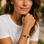 Bracelet ajustable en acier inoxydable avec pierres semi-précieuses.