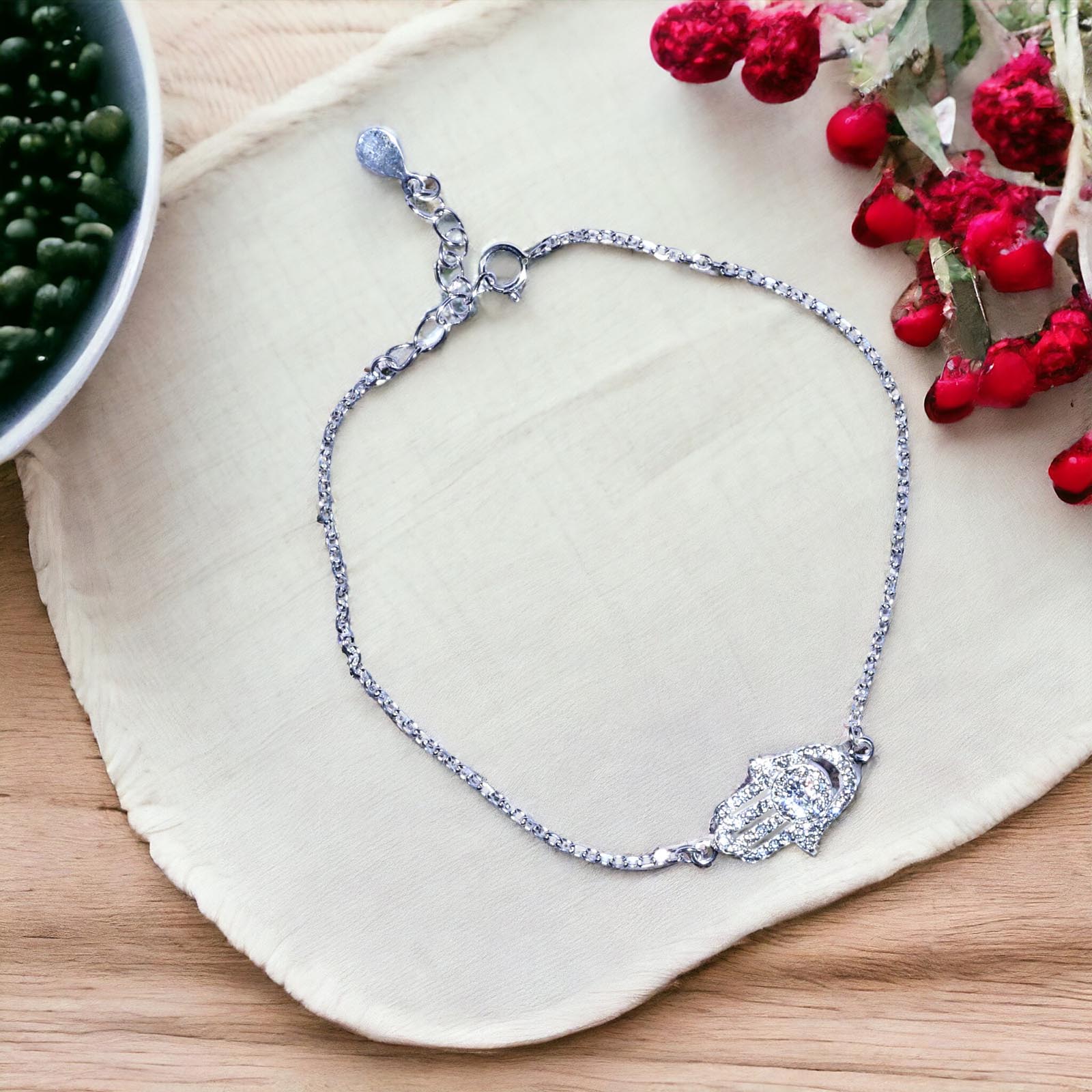 Bracelet ajustable en argent 925 avec pierres semi-précieuses.