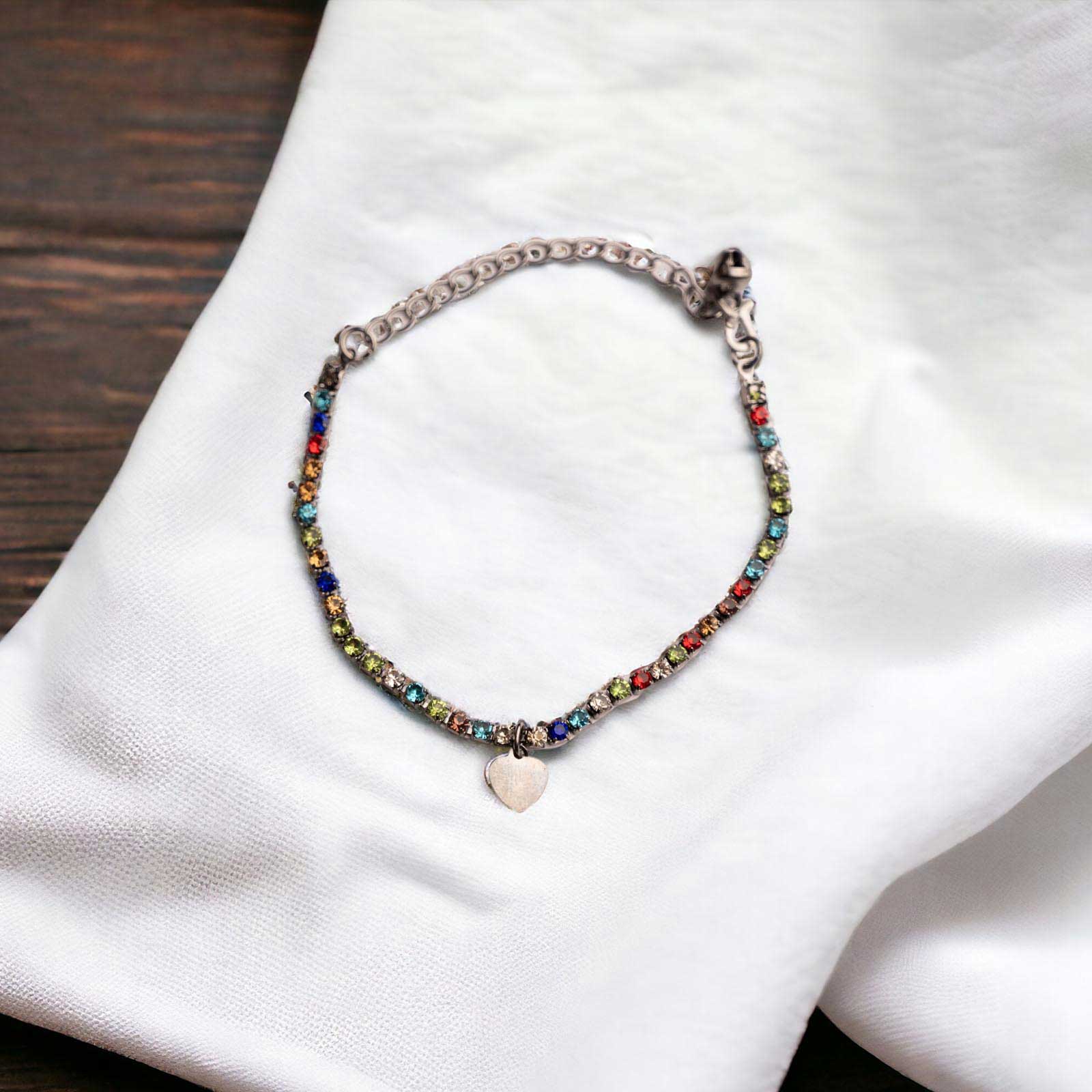 Bracelet ajustable en acier inoxydable avec des pierres de cristaux.
