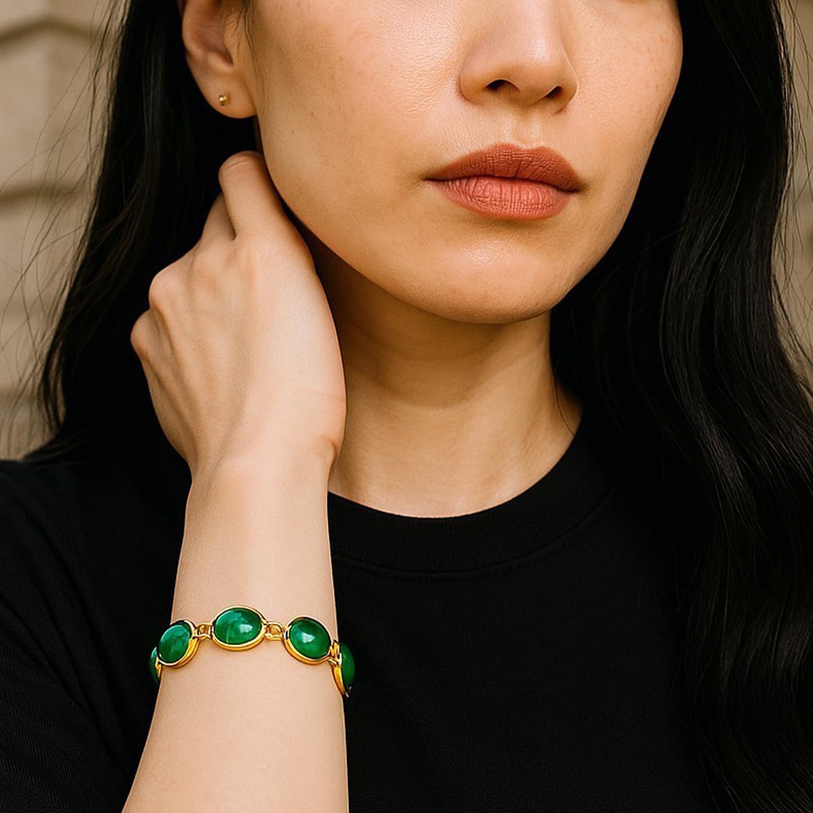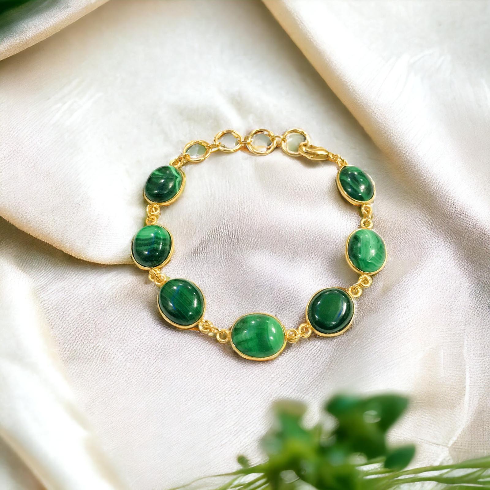 Bracelet ajustable  plaqué or en laiton avec pierres semi-précieuses