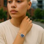 Bracelet ajustable plaqué platine en argent 925 avec pierres semi-précieuses.