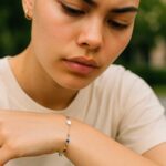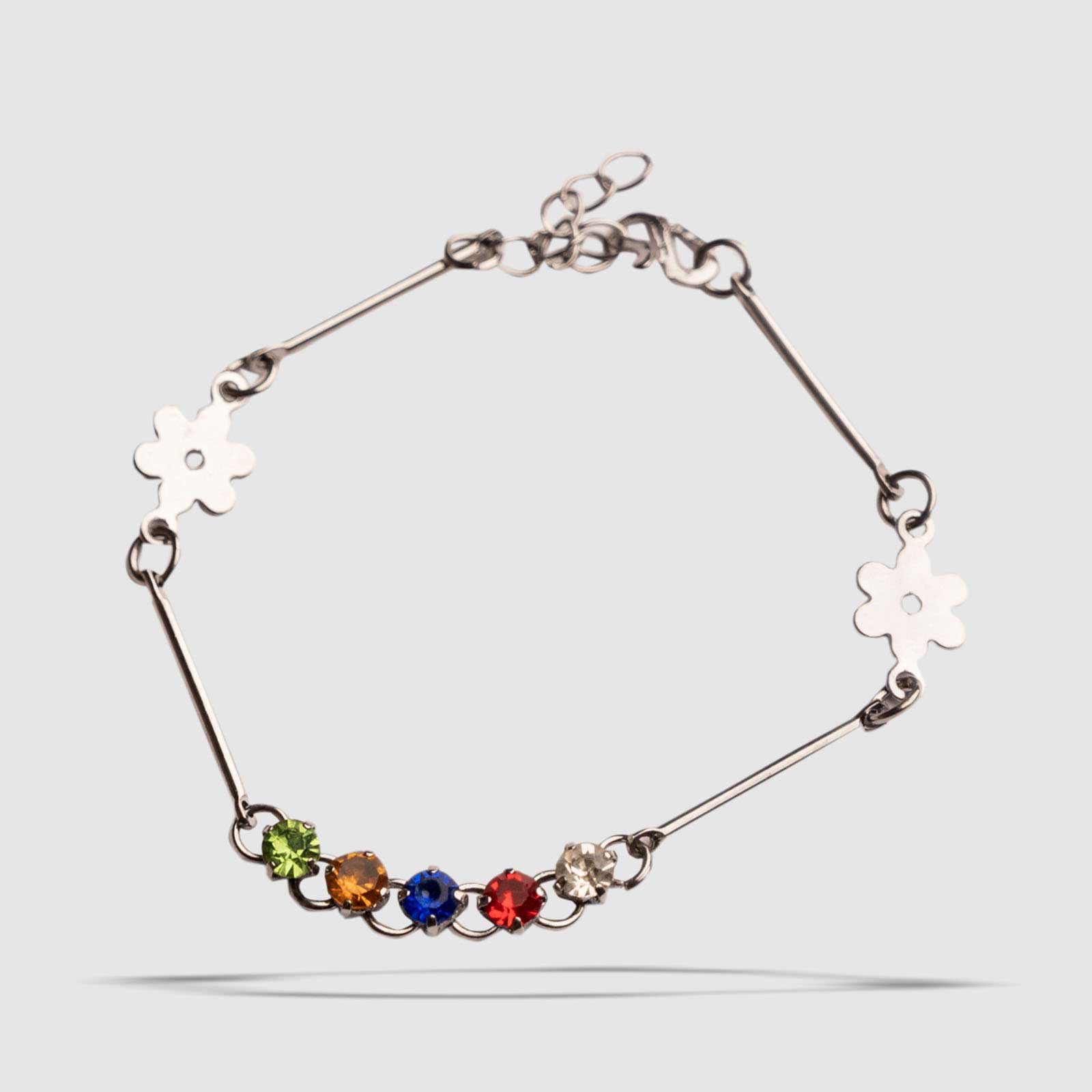 Bracelet ajustable en acier inoxydable avec des pierres de cristaux.