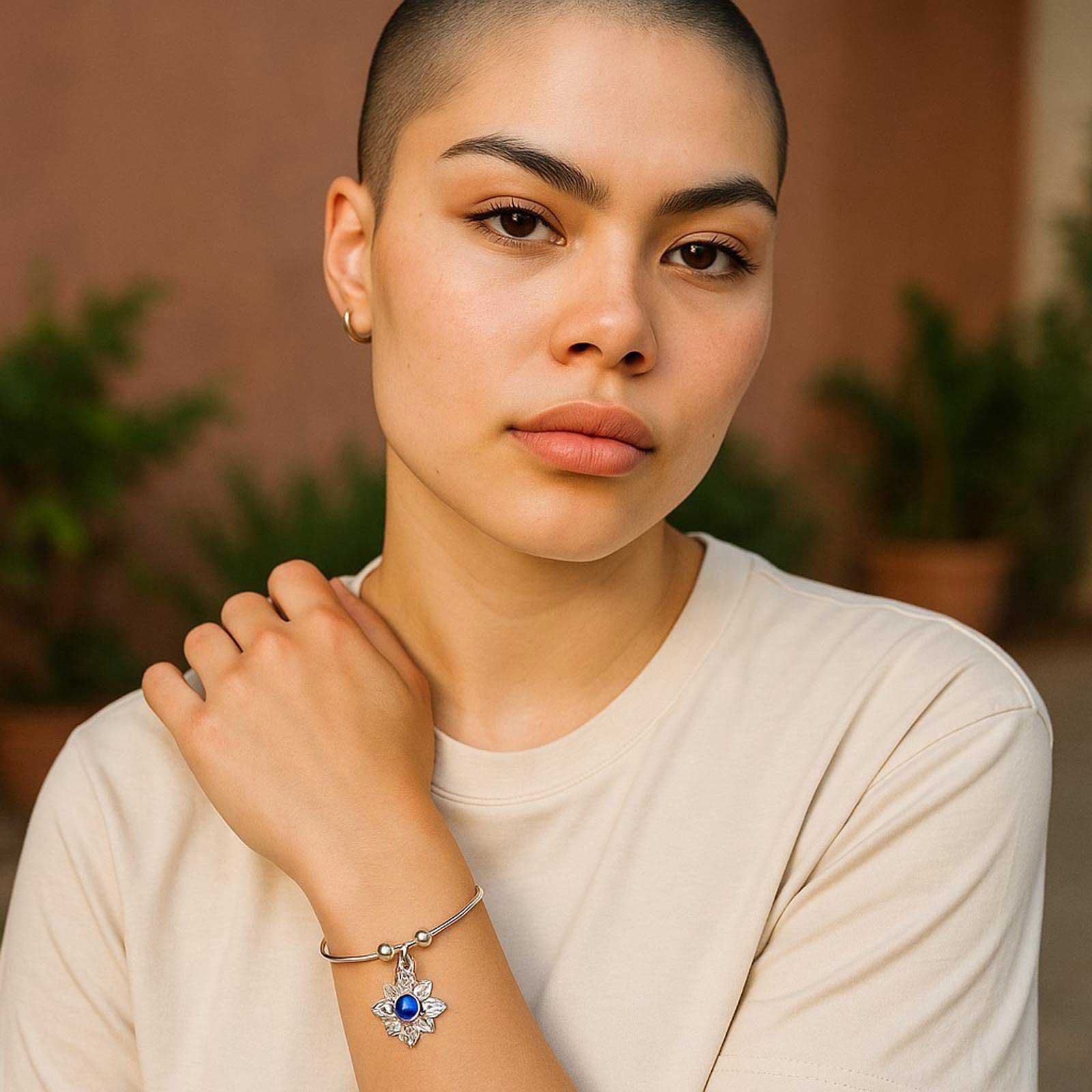 Bracelet ajustable en acier inoxydable avec avec pierre de cristal.