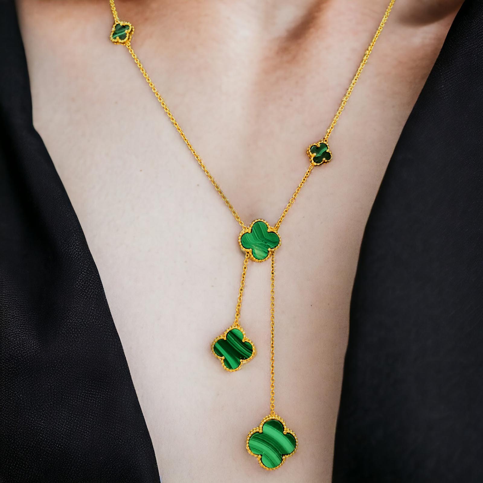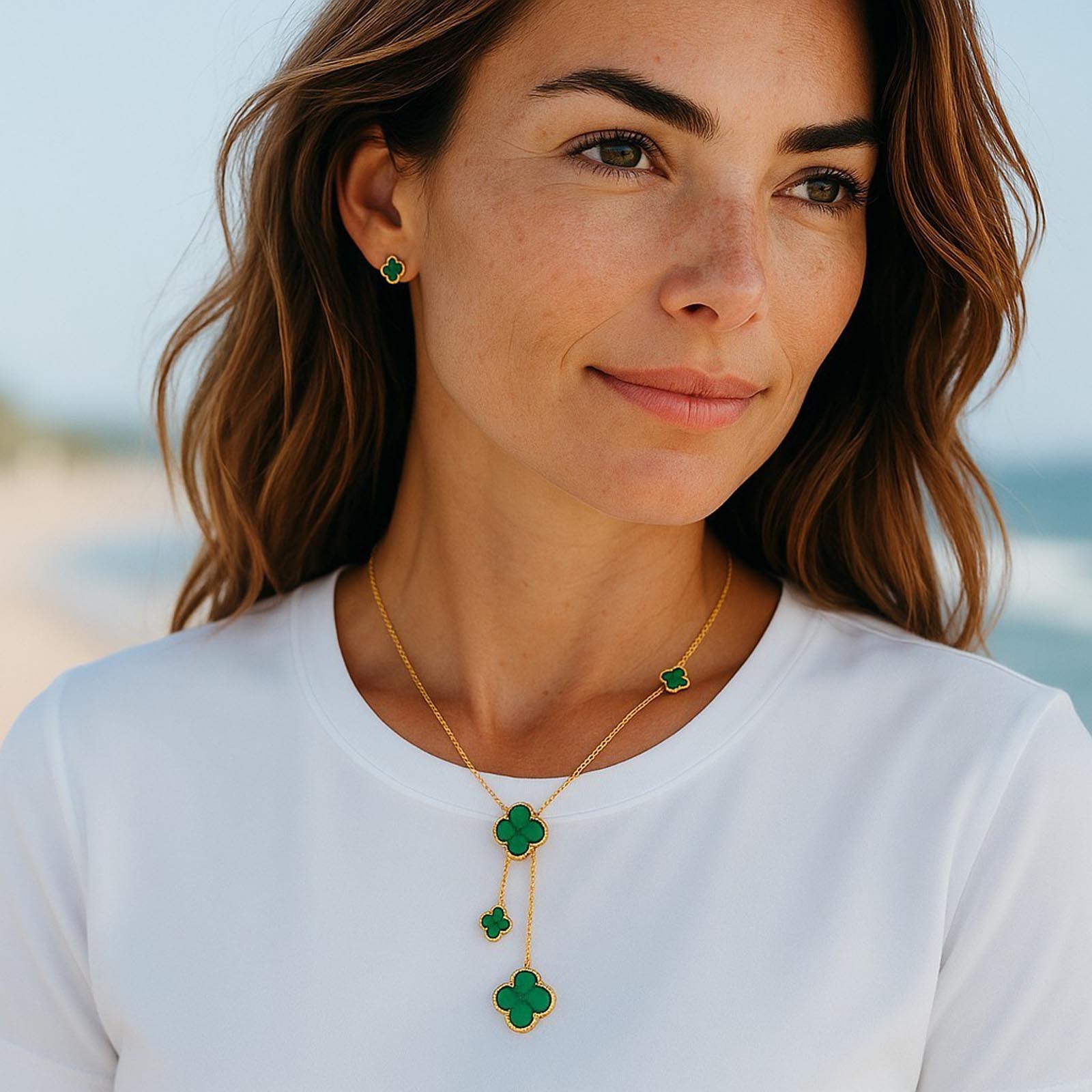 Collier en laiton plaqué or avec pierre semi-précieuse