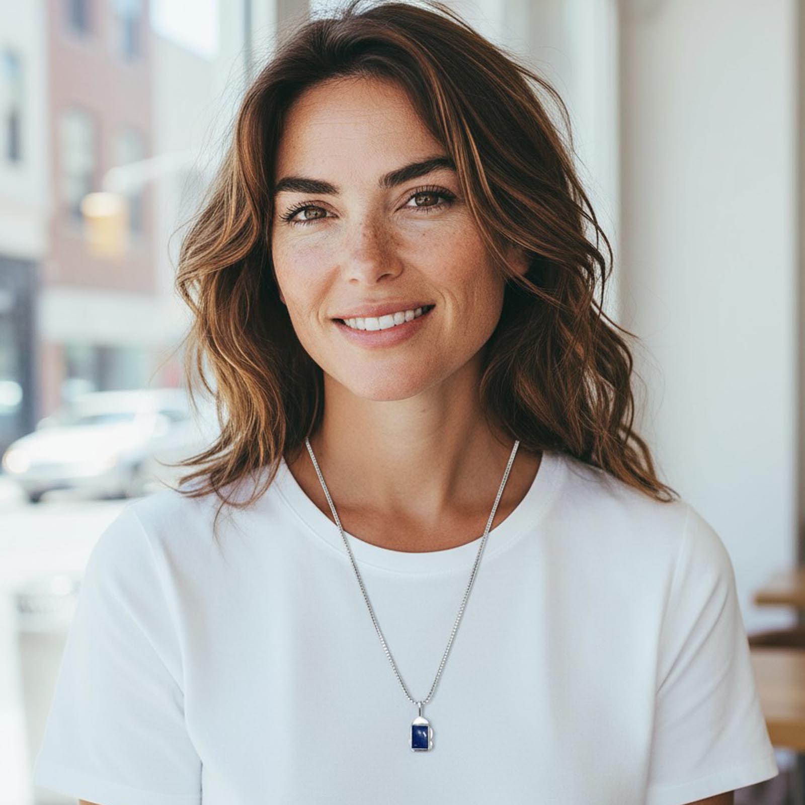Collier en acier inoxydable avec pierre semi-précieuse.