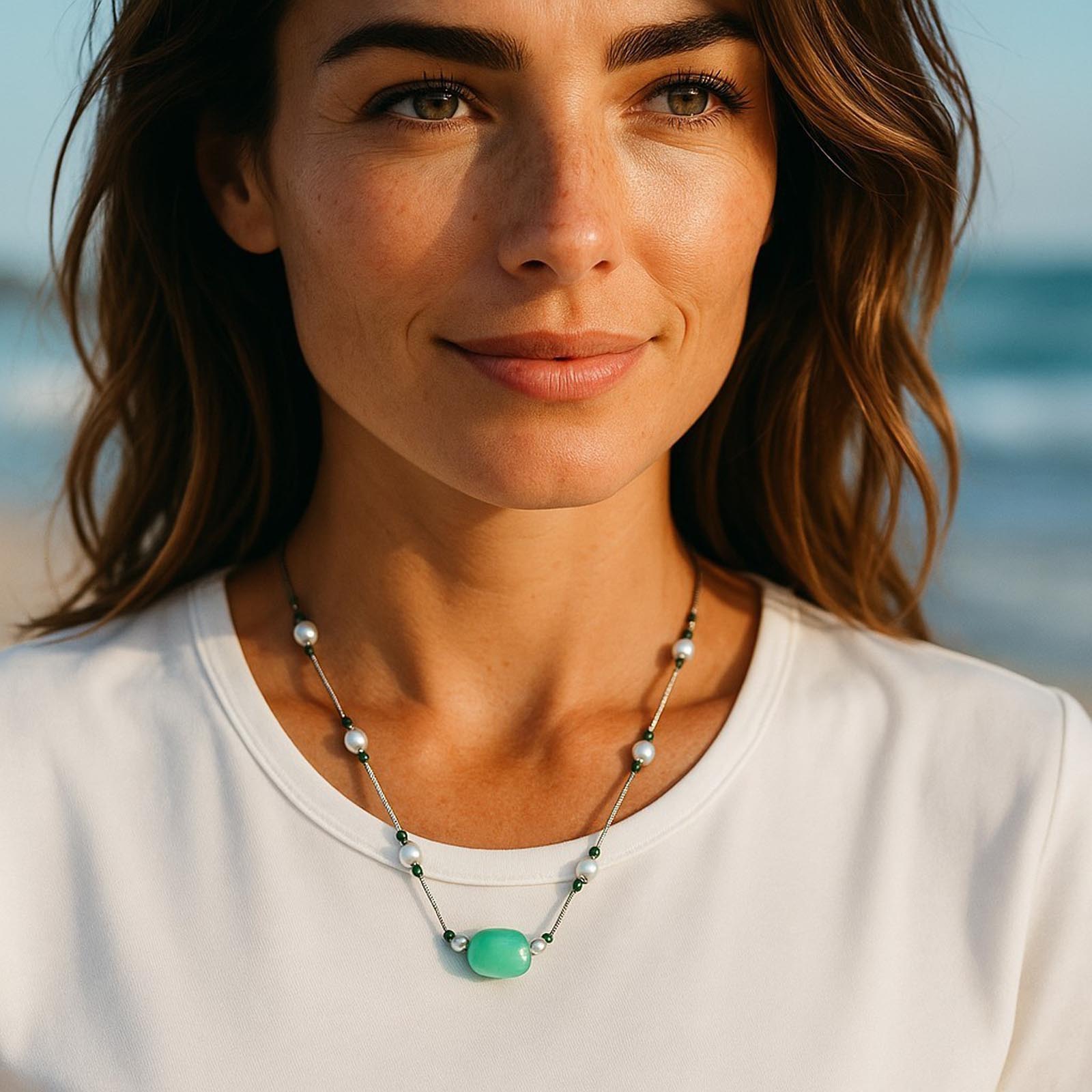 N2915031 Collier en argent 925 avec perle et pierres semi-précieuses
