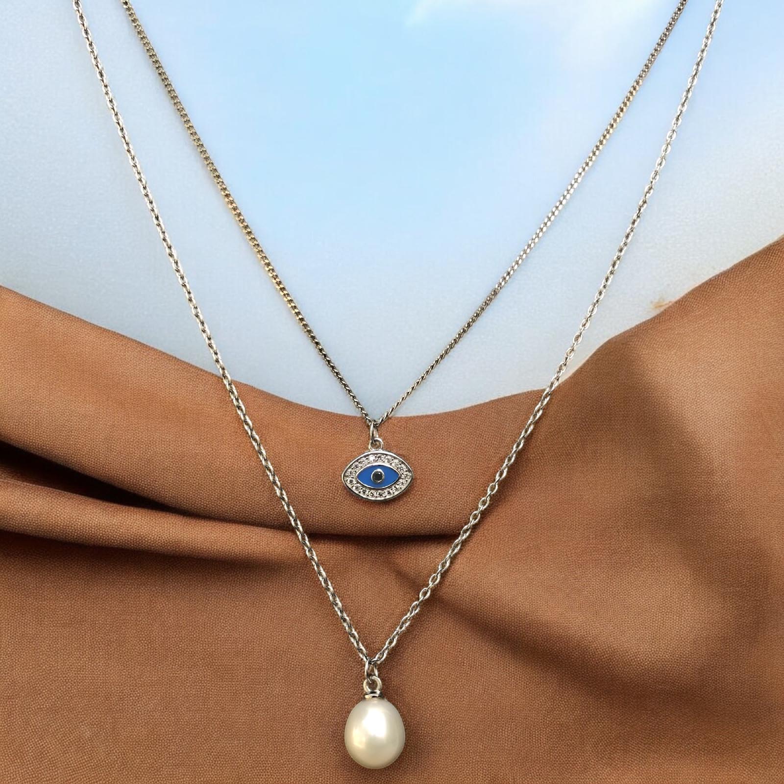 Collier en argent 925 avec perle et pierres semi-précieuses.