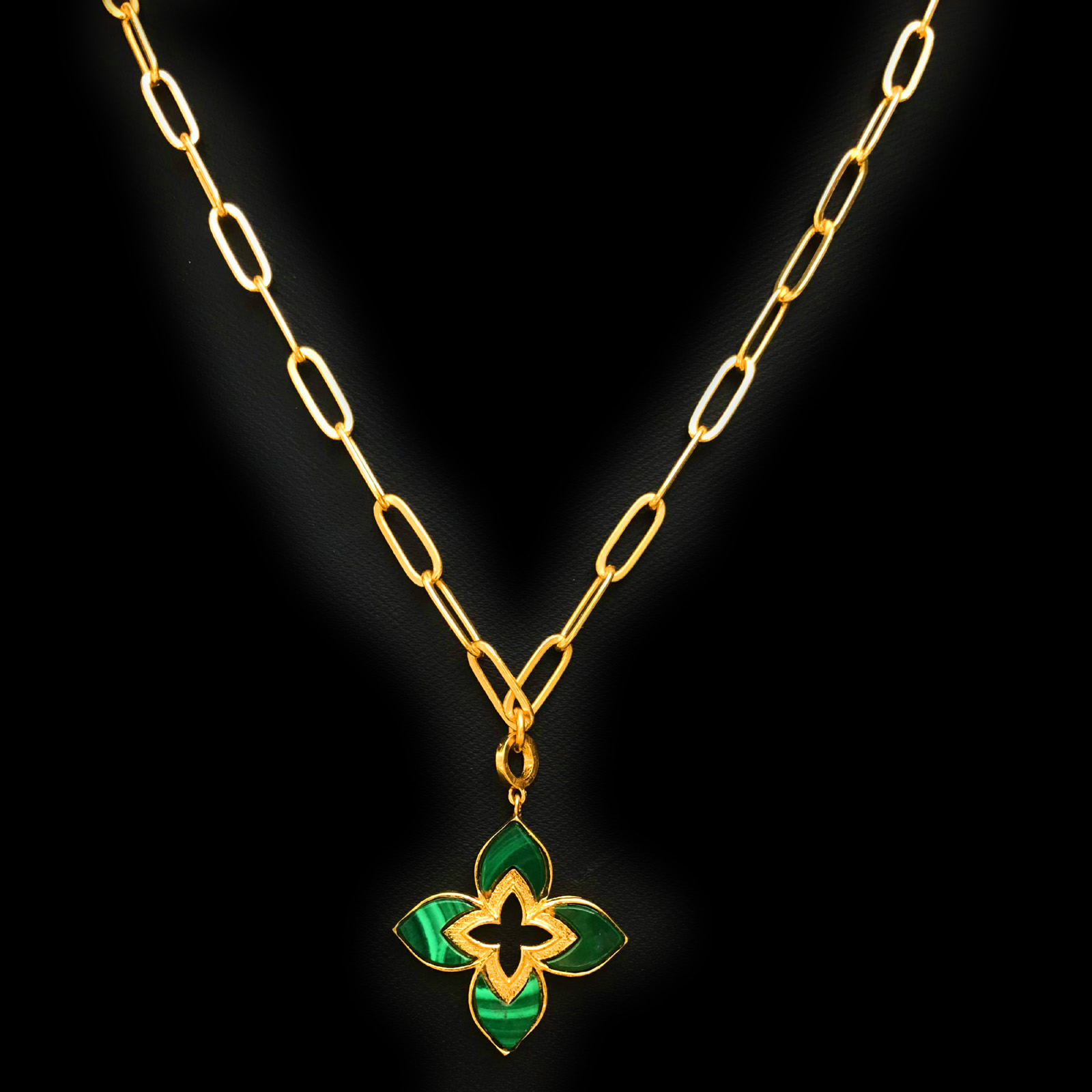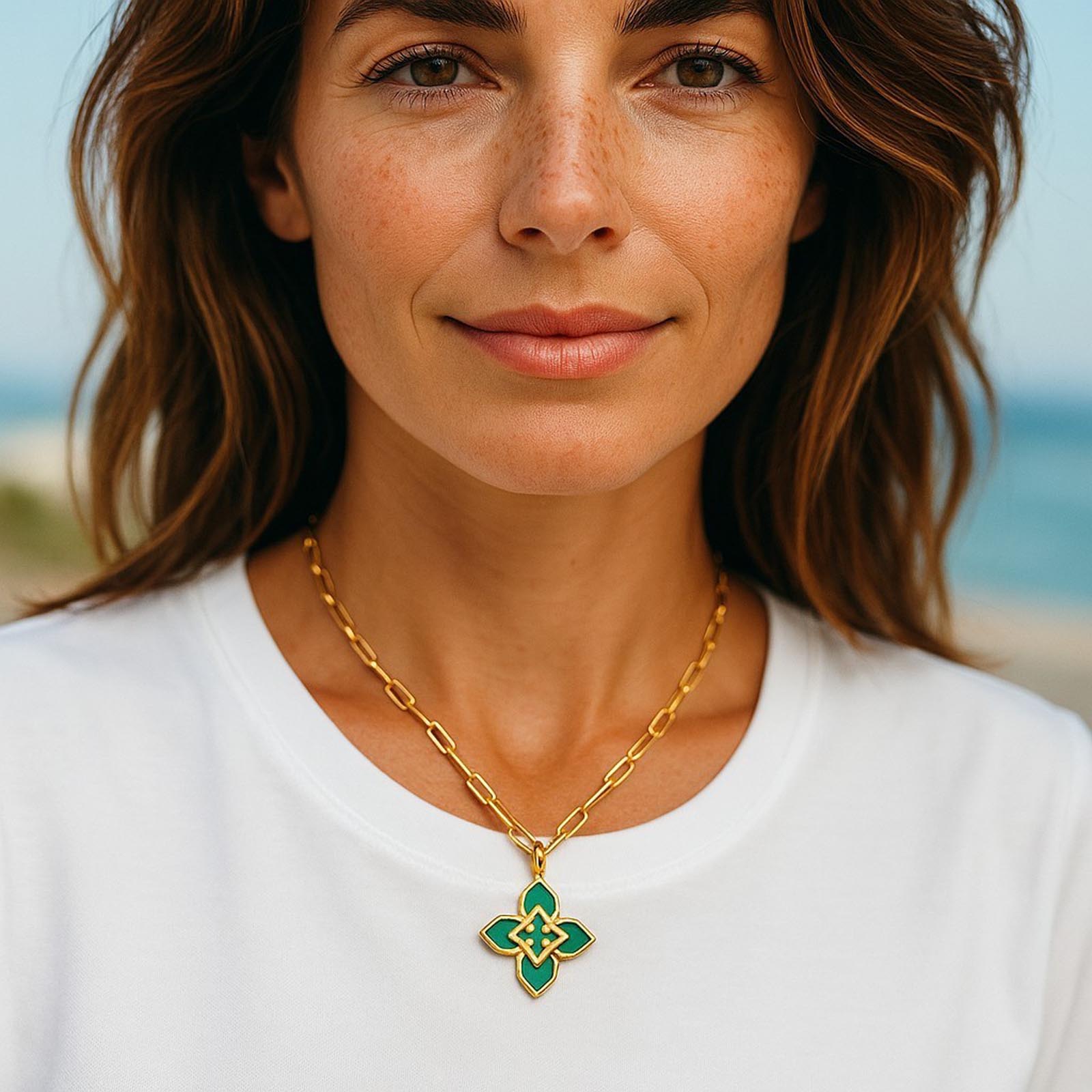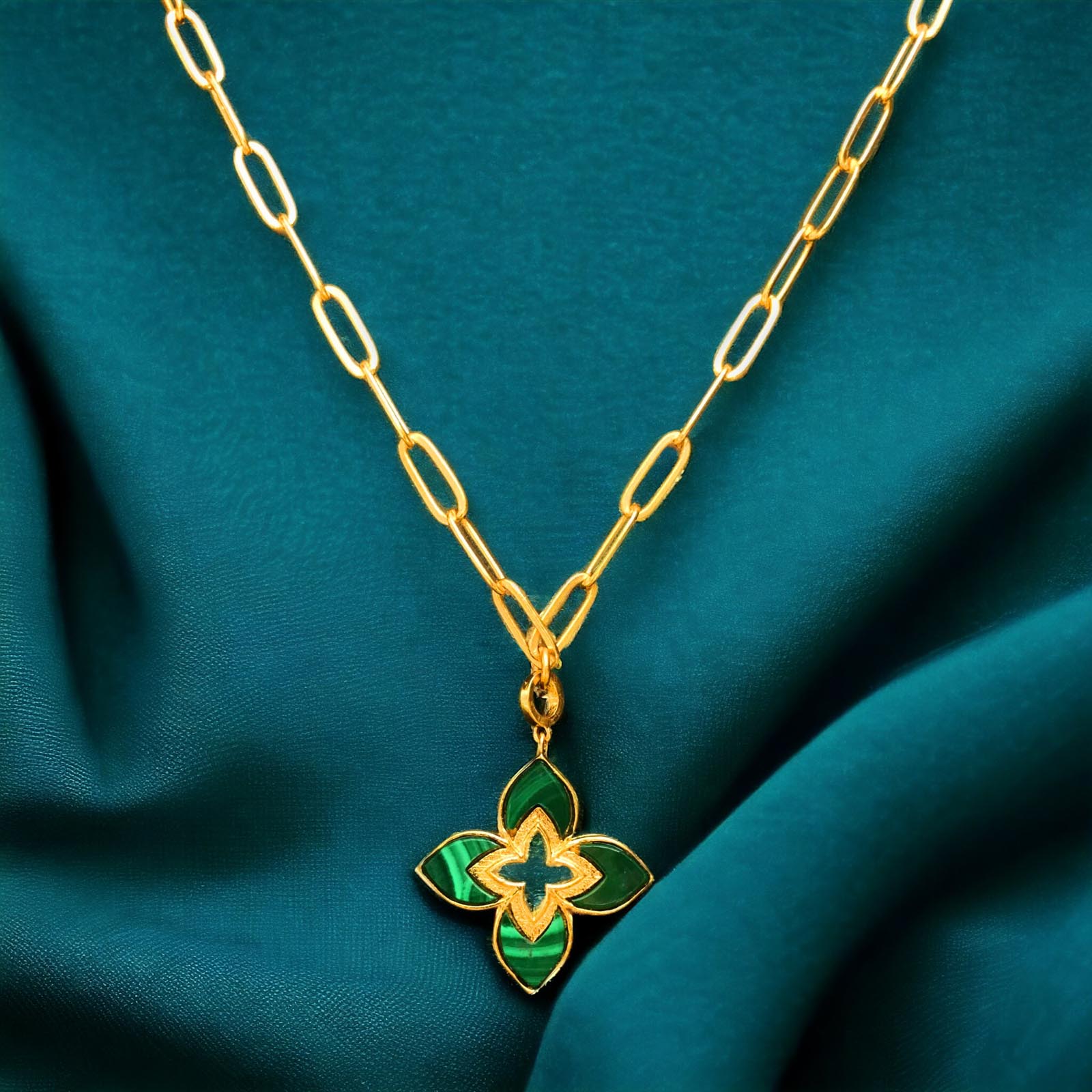 Collier en laiton plaqué or avec pierre semi-précieuse
