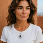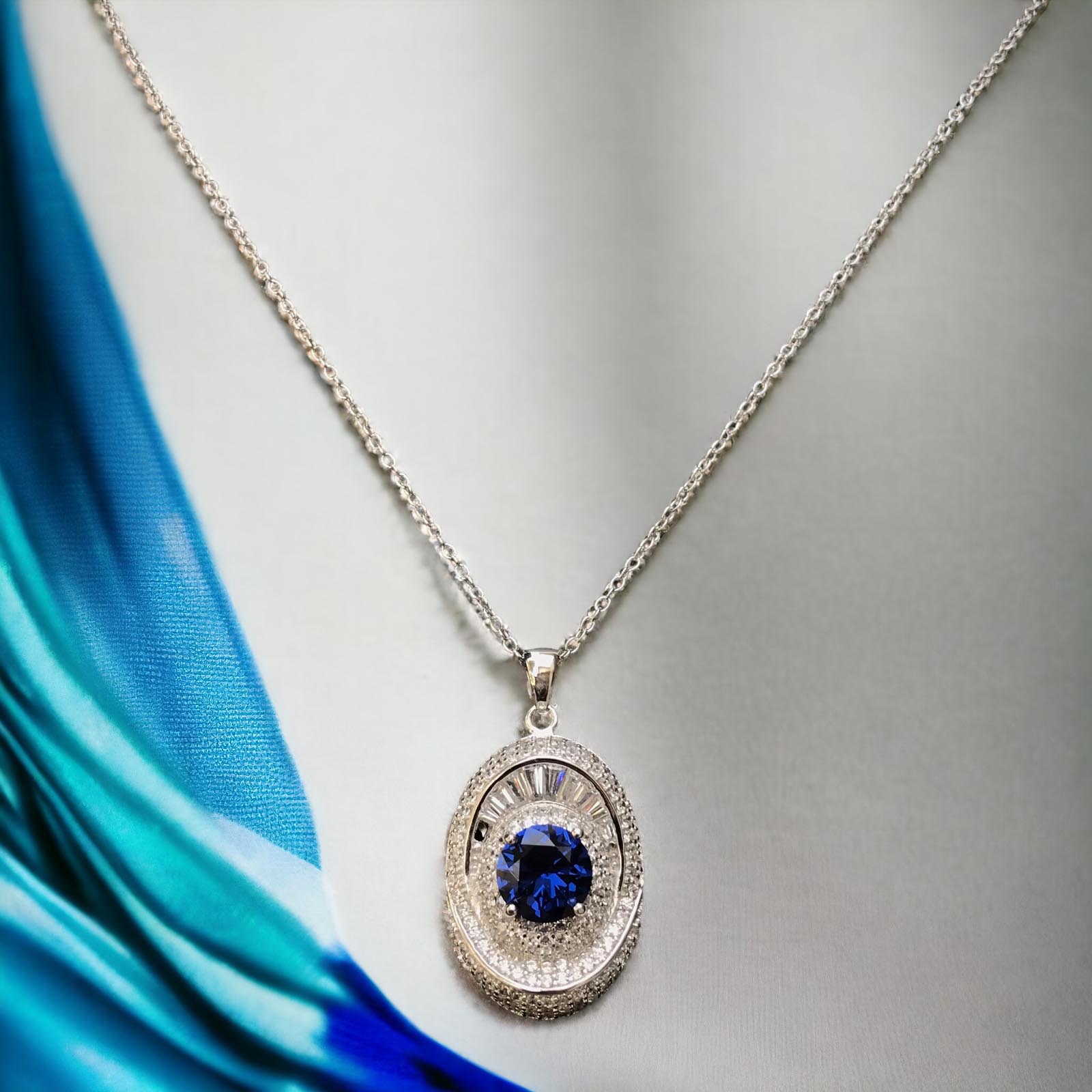 Collier en argent 925 platiné avec pierres semi-précieuses.