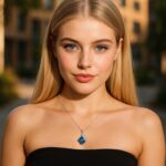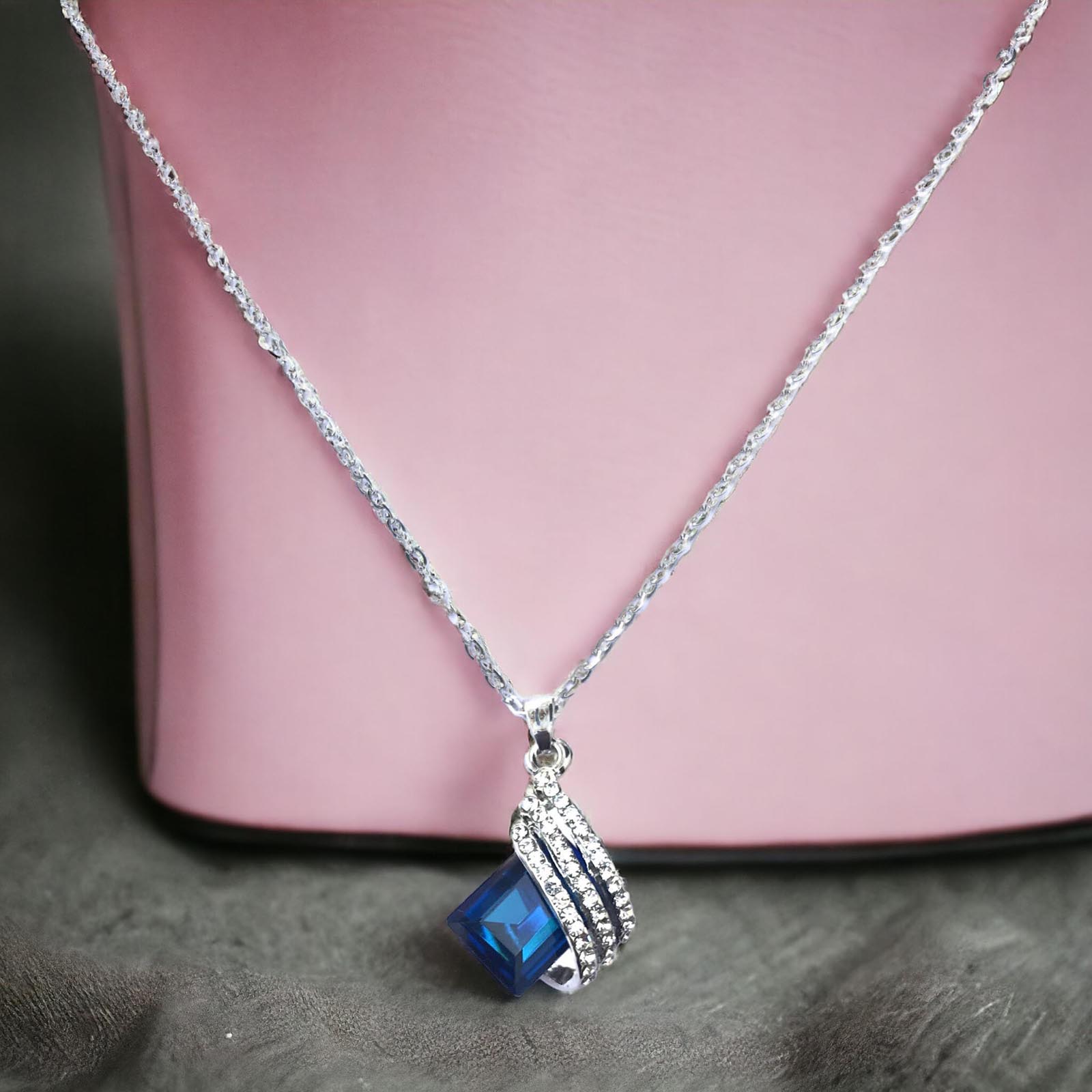 Collier en plaqué platine avec diamants américains et pierre semi-précieuse.