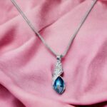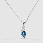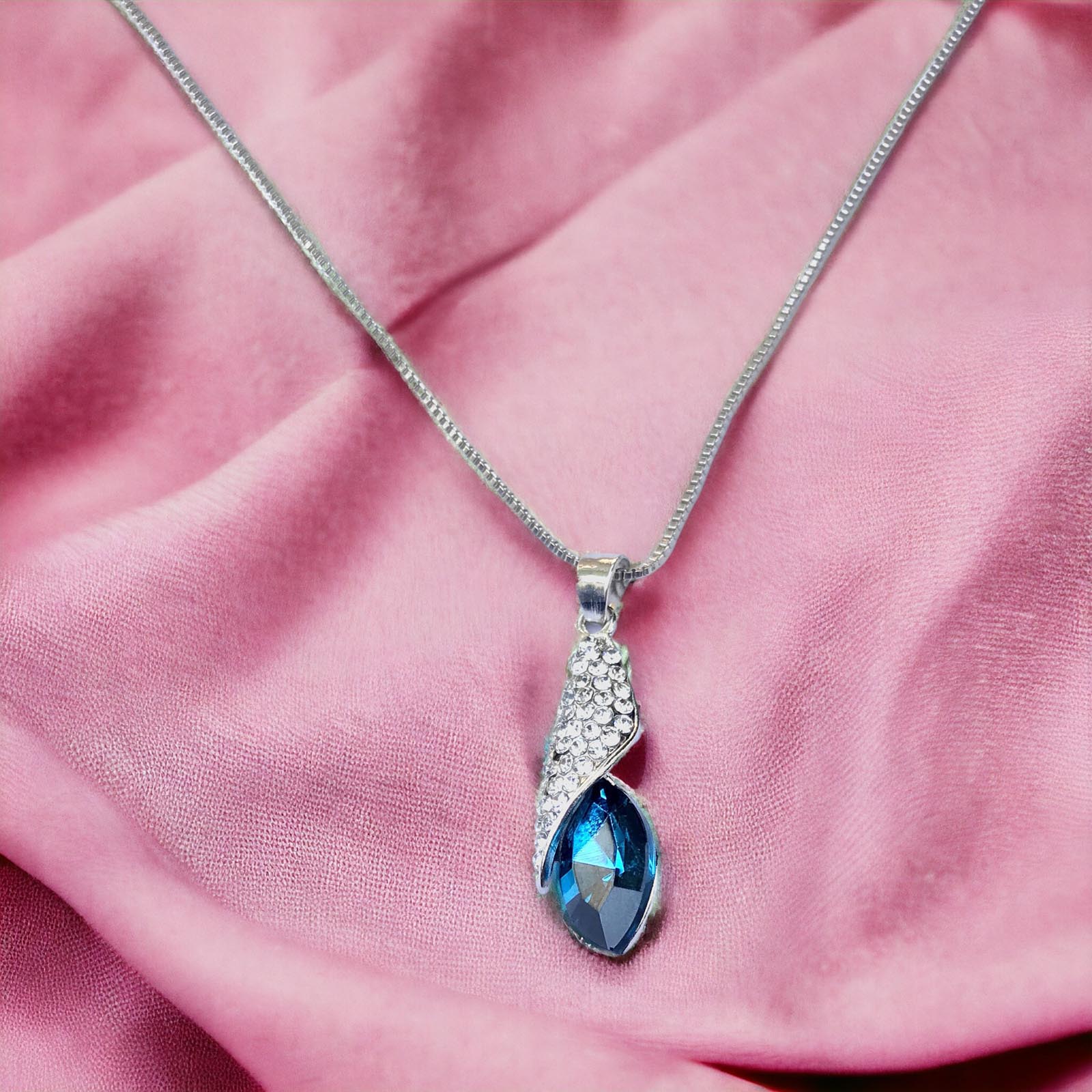 Collier en plaqué platine avec diamants américains et pierre semi-précieuse.