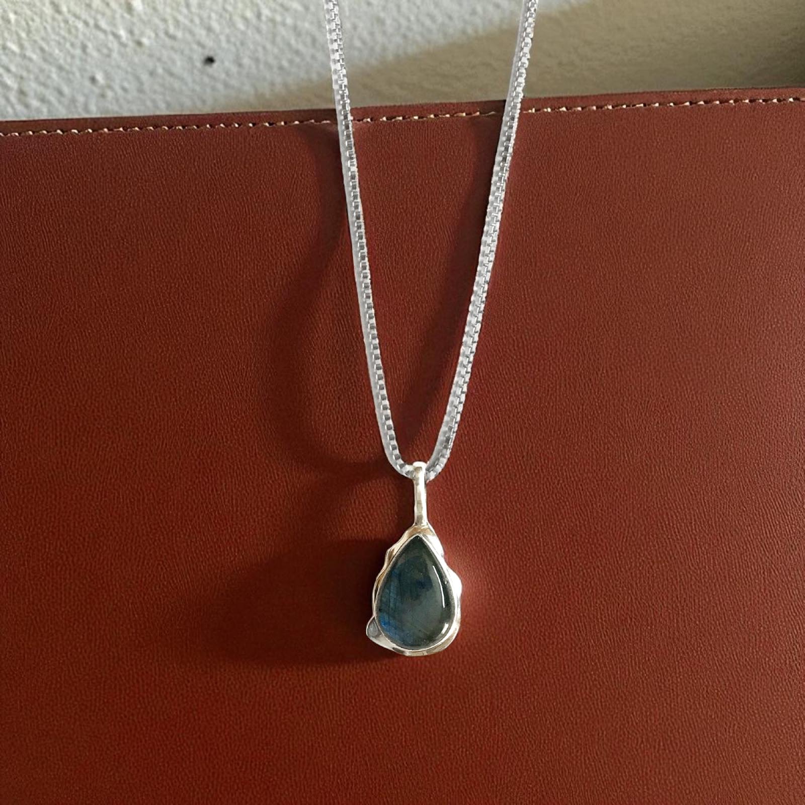 Collier en acier inoxydable avec pierre semi-précieuse.