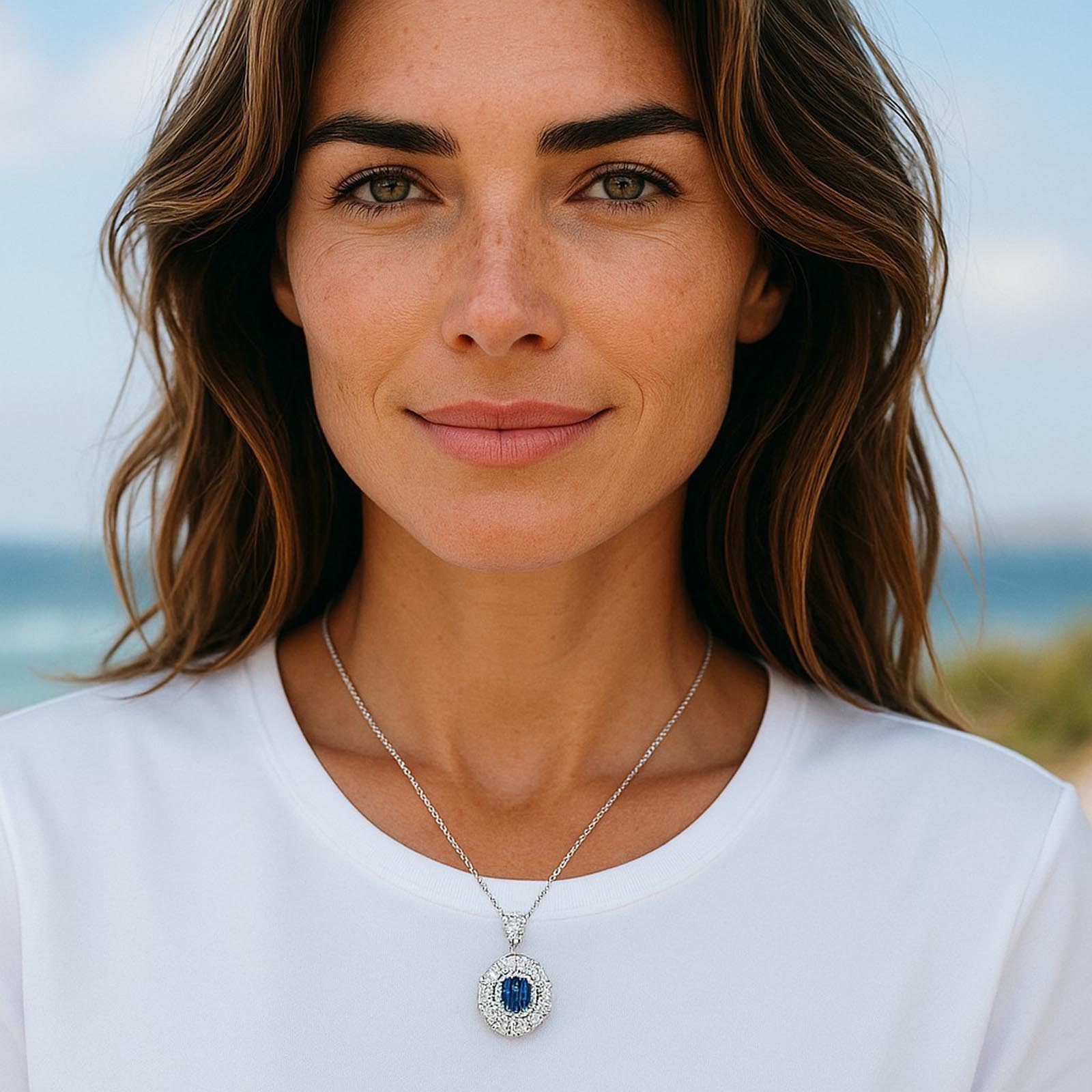 Collier en argent 925 platiné avec pierres semi-précieuses.
