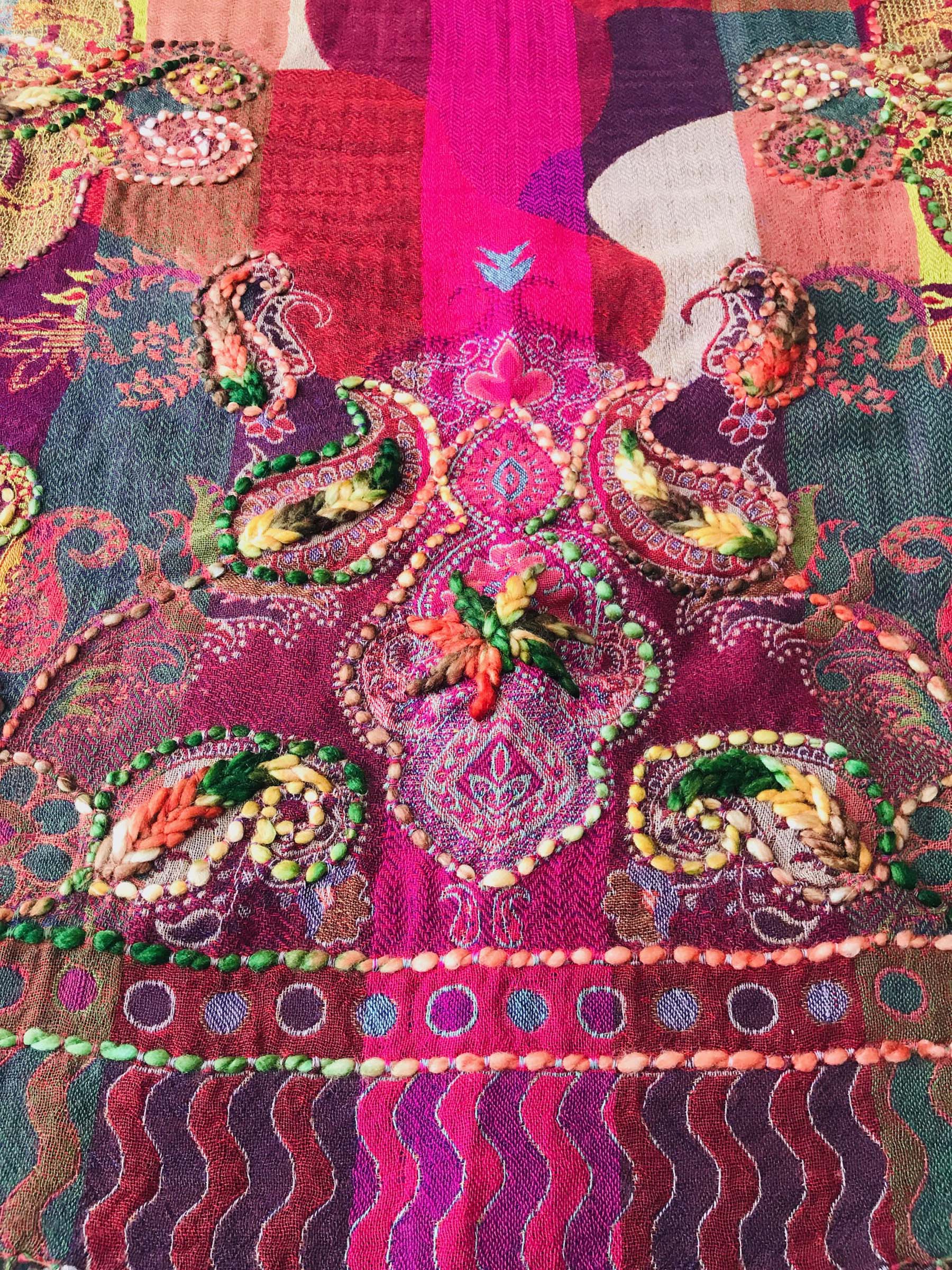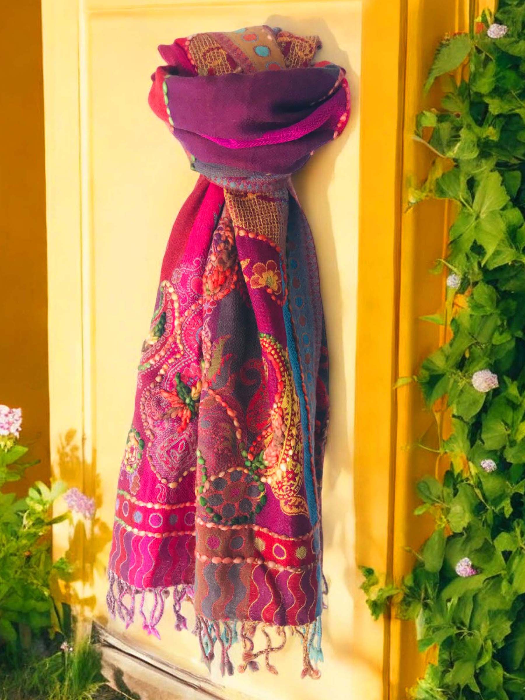 Écharpe/châle en 100% LAINE avec broderie à la main.