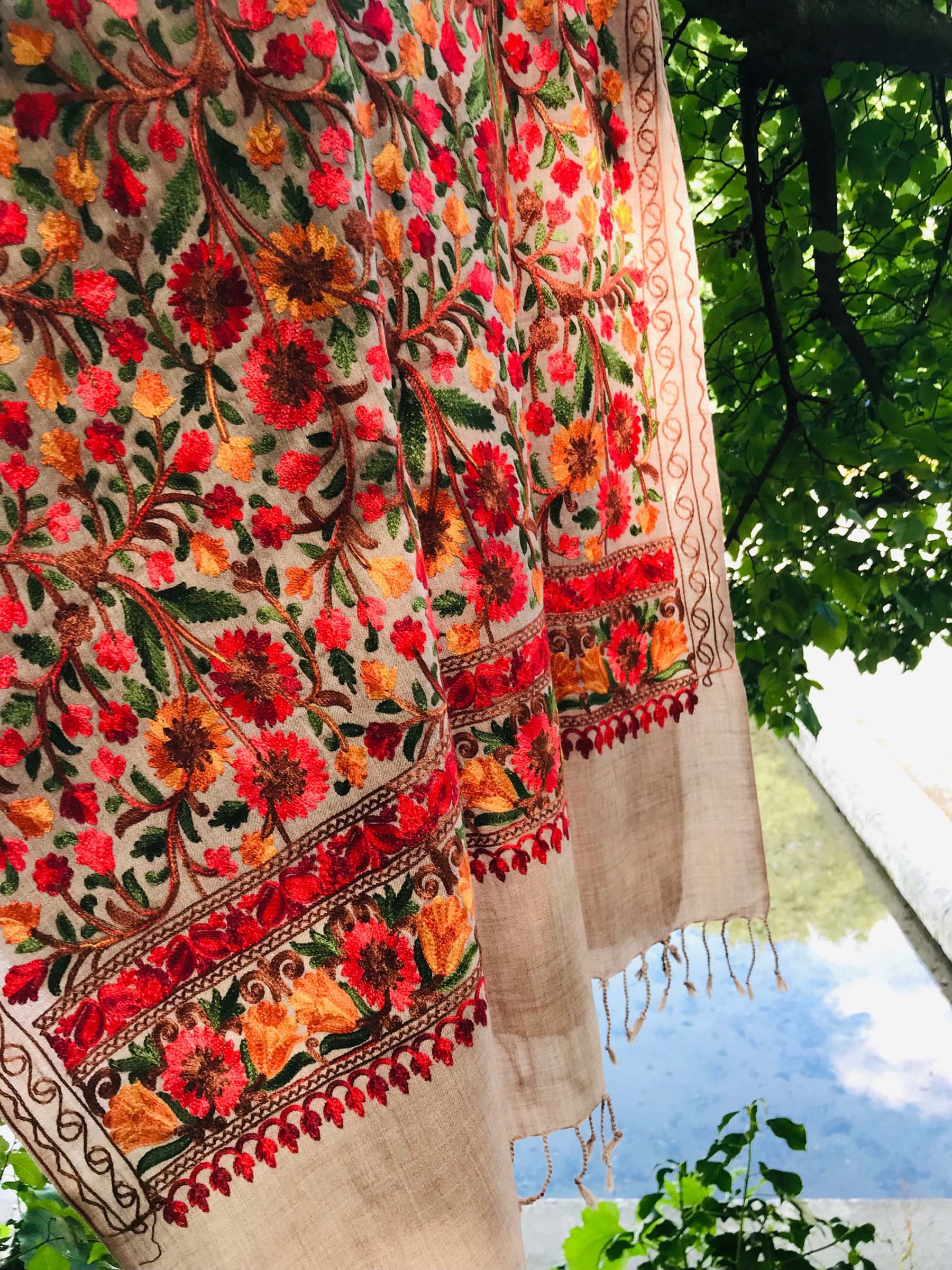 2933 Écharpe/châle en 100% LAINE avec broderie à la main