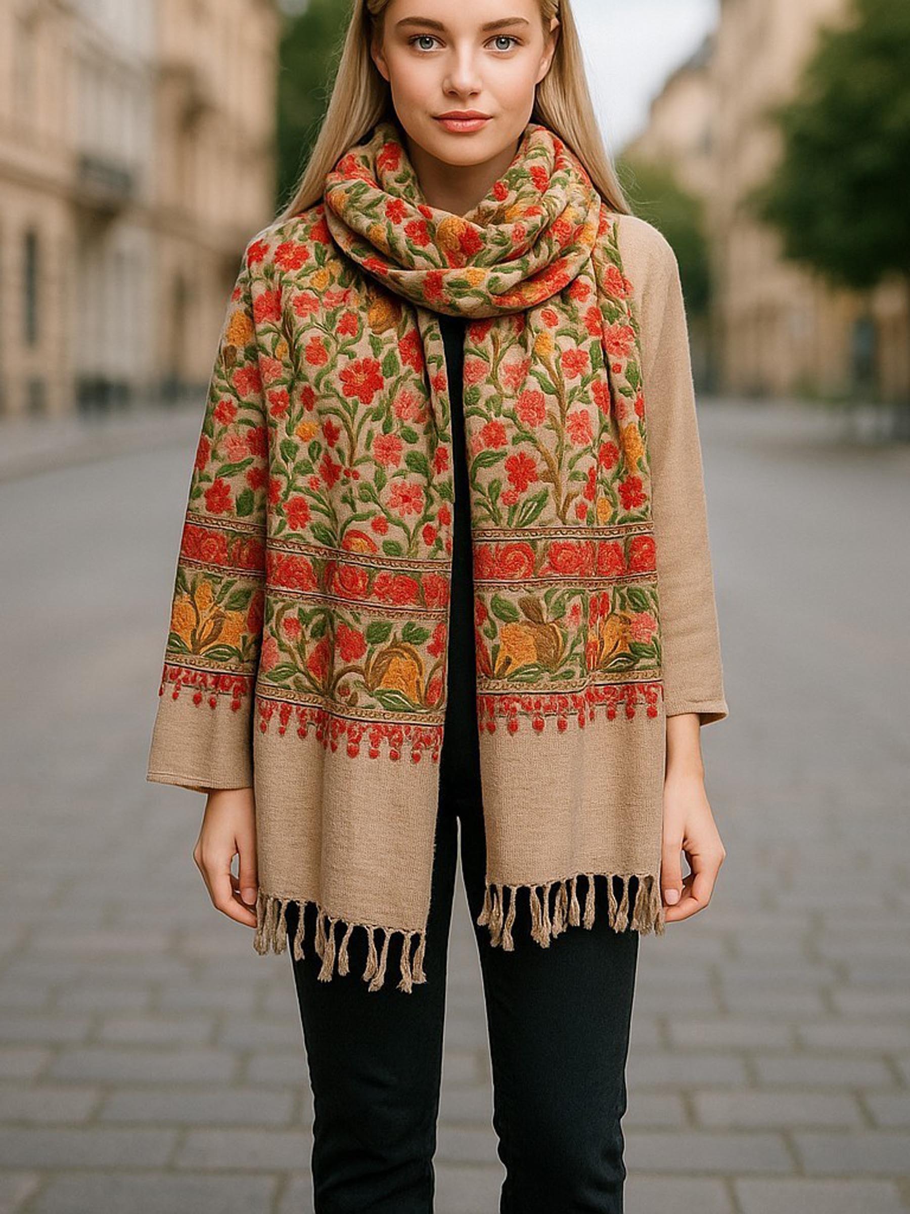 Home Accessoires Laine 2946 Écharpe/châle en 100% LAINE avec broderie multicolore