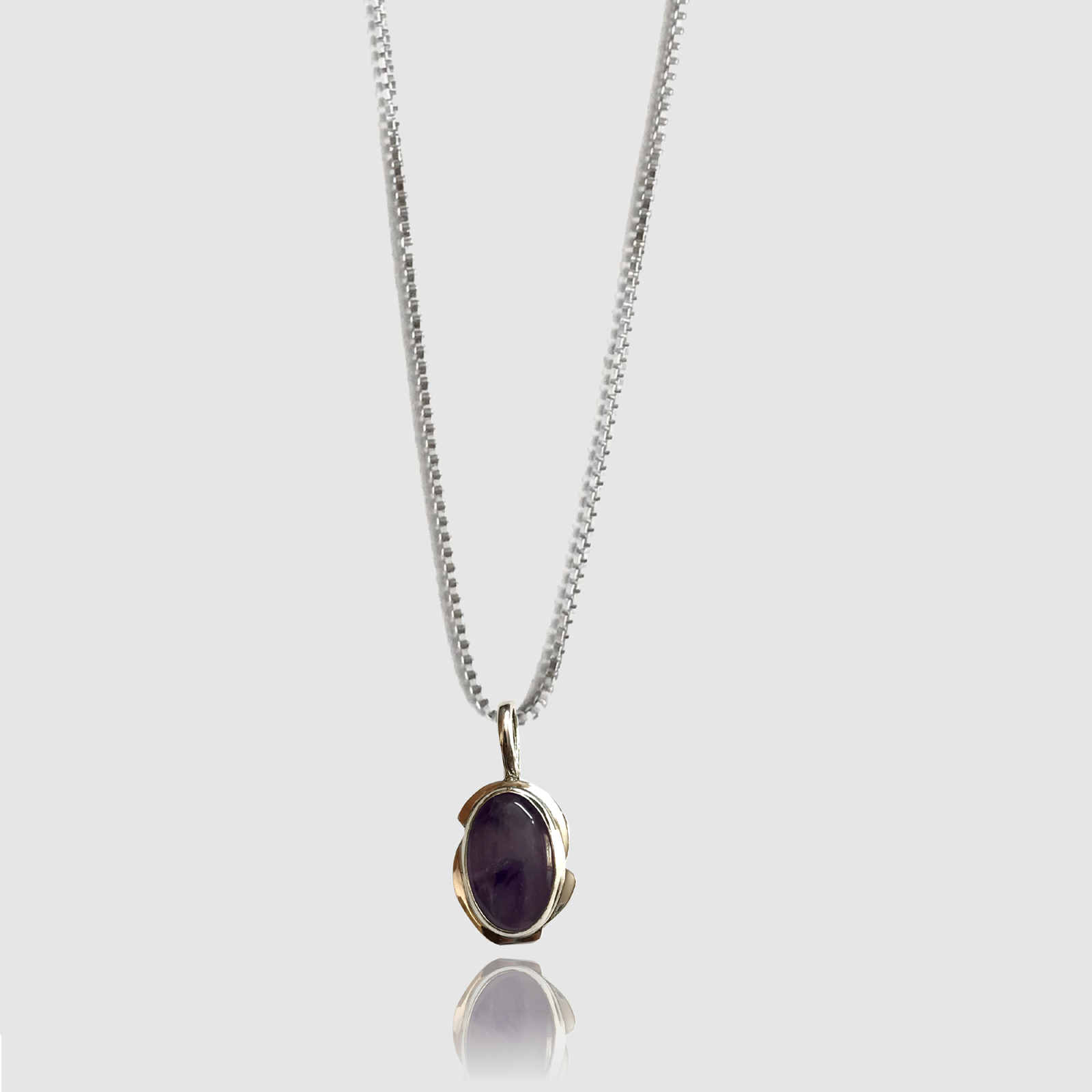 Collier en acier inoxydable avec pierre semi-précieuse.